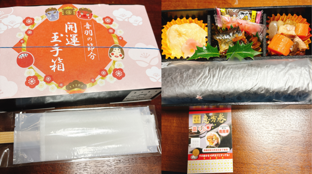 毎年恒例の恵方巻き!今年の方角は南南東 夫婦の日常 X Facebook はてブ LINE コピー 2026.02.03 毎年恒例、音羽の恵方巻き。今年も方角を見ながら一気食いをしました。 これ・・・年々窒息しそうになるのは歳ですか? 来年も頑張ります!