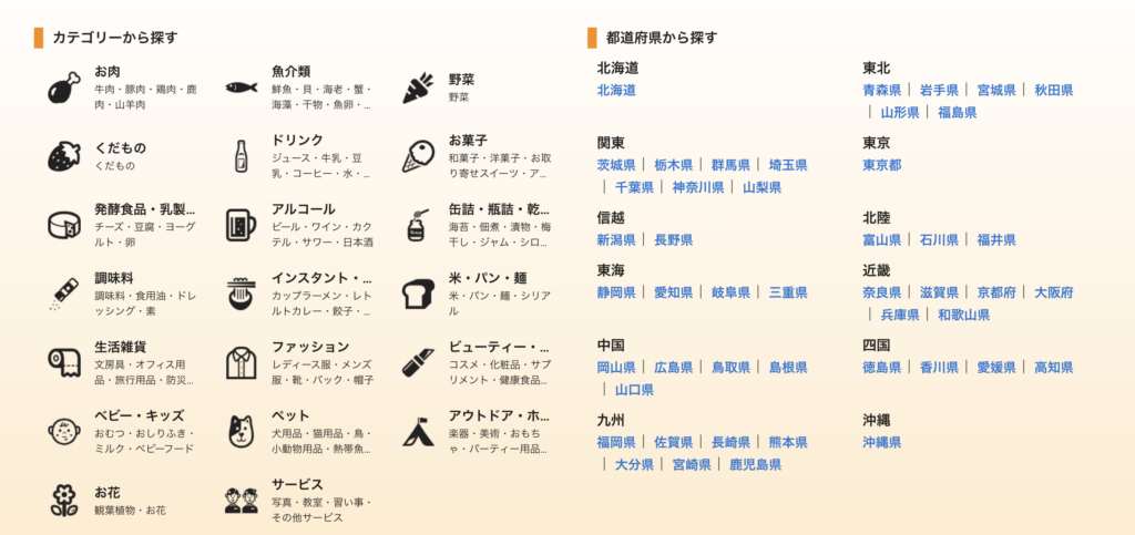 などカテゴリが分かれており、欲しい商品をすぐ探せます。